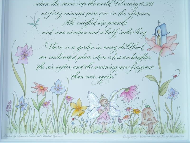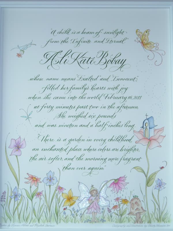 Explore the Gallery This collection offers a glimpse into the breadth of my work- from refined calligraphy and illuminated letters to more expressive, illustrative pieces that explore color and texture. Each commission is thoughtfully tailored. Through a collaborative consultation process, we’ll discover the most compelling way to bring your message to life.